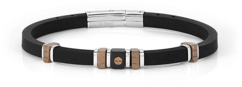Nomination City férfi karkötő típusa 028808-028. A Nomination City egy kaucsuk férfi karkötő acél betétekkel, melynek elemein fekete PVD bevonat található, amely hétköznapi és alkalmi viseletre egyaránt tökéletes. A karkötő alapja kaucsuk, melynek hossza vágással 19 és 21 cm között állítható.