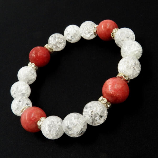 Roppantott hegyikristályból és természetes, extra minőségű rodokrozit ásványokból készült gumis karkötő. A hegyikristály mérete: 10mm, a rodokrozit 11-12mm-es. A karkötő mérete, a kisebb, 4 darab rodokrozittal 17-, maximum 18cm-es csuklóra megfelelő, a nagyobb karkötő 6db, rodokrozittal 19-20cm-es csuklóra használható. Bővebb informávió: "ADATOK PARAMÉTEREK" fül alat
