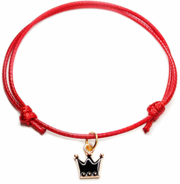 Piros zsinórszövet karkötő fekete tűzzománc korona charmmal Paraméterek:. Charm mérete kb. 1,2 cm. Charm anyaga fémötvözet. Karkötő anyaga textil.