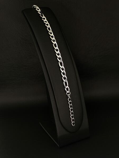 Különleges és kedvelt fazonú, vékony anker típusú, ródiummal bevont arany karkötő, köves és csónak alakú fényes betétekkel kombinálva.