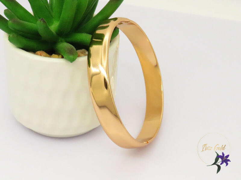 Gold filled minta nélküli egyszerű széles nyitható karperec Szin: 18K Méret : 60 -as kb 19-20 cm-es csuklóra jó Szélessége : 10 mm A forgalmazott divatékszerek alapanyaga nikkel és ólommentes ezért többnyire nem okoznak allergiás tüneteket, nyugodtan hordhatják fémérzékeny emberek is. Általában nem színezik a bőrt és más divatékszerekhez képest nagyságrendekkel jobb k