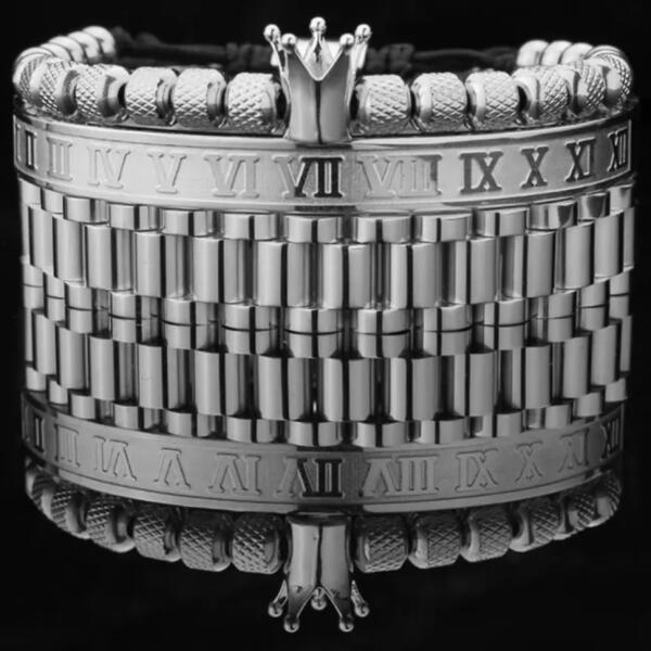 Kirsten karkötők A Kirsten karkötők a luxus és a modern elegancia kombinációját kínálják. Ez a három részből álló szett tartalmaz egy karkötőt római számokkal, egy díszes karkötőt gyöngyökkel és korona motívummal, valamint egy feltűnő karkötőt robusztus dizájnnal. Mindegyik karkötő a részletes kidolgozásával emelkedik ki és viselhetők együtt a merész megjel