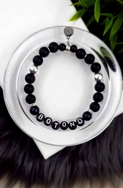 Csodálatos lehetőség, hogy gyermeked nevét magadon viseld!De más, számodra fontos személy nevével, vagy akár a saját neveddel is készülhet Ez az egyedi karkötő 8 mm-es matt ónix ásványokból készült és ezüst díszítése van, és egy nevet tartalmaz. A név egyedileg rendelhető hozzá, a vásárlás végén a Pénztár/összegzés menüpontban, a megjegyzés rovatban add meg
