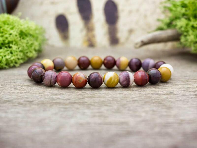 Mokait jáspis ásványgolyókból fűzött gumis karkötő. Amit a mokait jáspisról érdemes tudnod: Gyakori előfordulása és a földszínek széles skálája miatt a jáspist ősidők óta használják dísztárgyak és pecsétek készítésére. Mágikus ereje miatt is nagyra értékelték. Úgy hitték, hogy túlvilági szellemi cselszövések ellen véd és a szerelmi bánatot mérsékli.