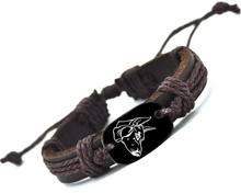 Dobermann rajongók tökéletes kiegészítője lehet ez az állítható barna bőr karkötő, amelyre egy fekete sima kő van erősítve, melybe egy cuki hegyesfülű dobermann stilizált képét vésték.