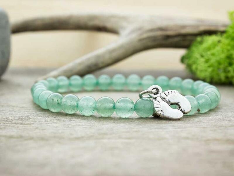 8 mm-es aventurin ásvány gyöngyökből speciális gumira fűzött ezüst színű baba tappanccsal díszített karkötő. Amit az aventurinról érdemes tudnod: Az aventurin színe a szürkés-zöldtől a sötétkékig terjedhet. Lelki gyógyhatás: Megnyugtató hatással bír idegrendszerünkre, szívünkre és megkönnyíti ezáltal elalvásunkat. Segít mélyen meghúzódó haragunk feloldás