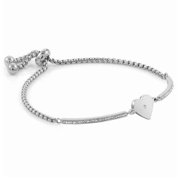 Nomination Milleluci női karkötő típusa 028003-022. Milleluci ezüst színű állítható karkötő szív medállal cirkónia dísszel egy egyszerű, mégis elegáns darab, mely tökéletes választás akár a hétköznapokra akár alkalmakra. A karkötő nemesacélból készült, szív alakú medáljában egy cirkónia kő, illetve a medál mellett kétoldalt merev cirkónia kövekkel kirakot