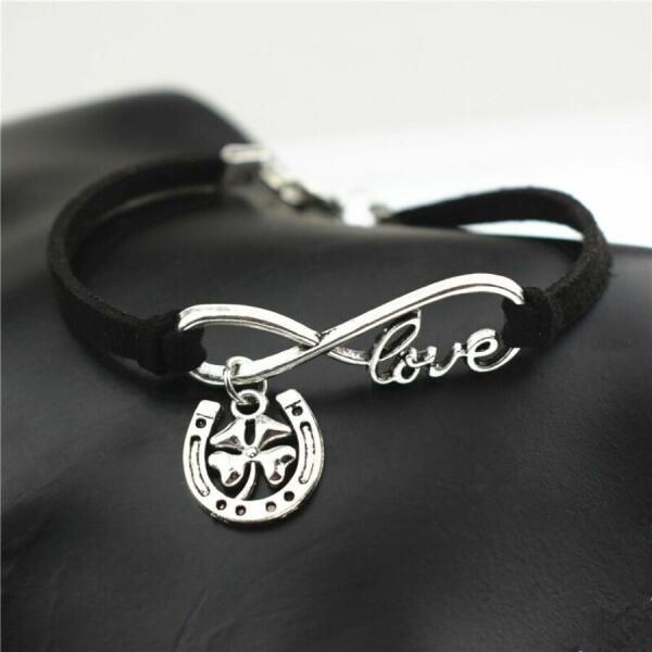 Fekete műbőr LOVE, végtelen és négylevelű lóhere karkötő. Az üzenet egyértelmű, a dizájn és a kivitel remek. Kell ennél több?Anyaga műbőr és fém ötvözet. 17+5 cm. Egy jól megválasztott ékszer öltöztet, feldobja a napodat, valahányszor ránézel, jobb kedvre derülsz. A színekkel és anyagokkal manapság könnyű variálni a különböző stílusokat, nem kell ragaszkod
