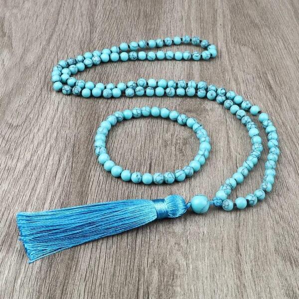 A aurakvarc és festett türkiz ásvány golyók gumira vannak felfűzve. Amit a türkizről érdemes tudnod: A türkiz színe halványkék - halványzöld, átlátszatlan. A kék ég és a tenger, a végtelen átlátszó magasság és mélység szimbóluma, a régi időkben szent kőnek tartották. Kedveltsége az oszmán birodalom idején érte el csúcspontját. Keleten a türkiz még ma is sze