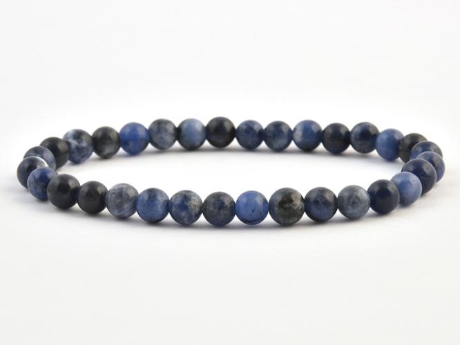 A szodalitban a kék szinte minden árnyalata megfigyelhető és a benne előforduló fehér márványminta csak még érdekesebbé teszi. A márványminta a nagyobb gömbökben jobban érvényesül. A szodalit 6 mm-es szabályos gömbjeiből készült gumis karkötő. Ezt a karkötőnket is duplasorosan fűztük, hogy tartósabb legyen A karkötő méretének meghatározása : a csuklód méreté
