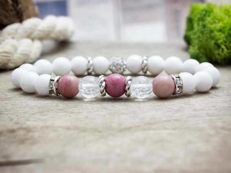 8 mm-es rodokrozit, jáde és hegyikristály ásvány gyöngyökből készült ásvány karkötő. Egyedi tervezés alapján készült kézműves ékszer. Figyelem! Az ásványokat, kristályokat az őskor óta használják a test, a lélek és az érzelmek harmonizálására. Az ókori kultúrákban kifejezetten elterjedtek voltak. Az évezredek alatt számtalan tudás és tapasztalat gyűlt öss