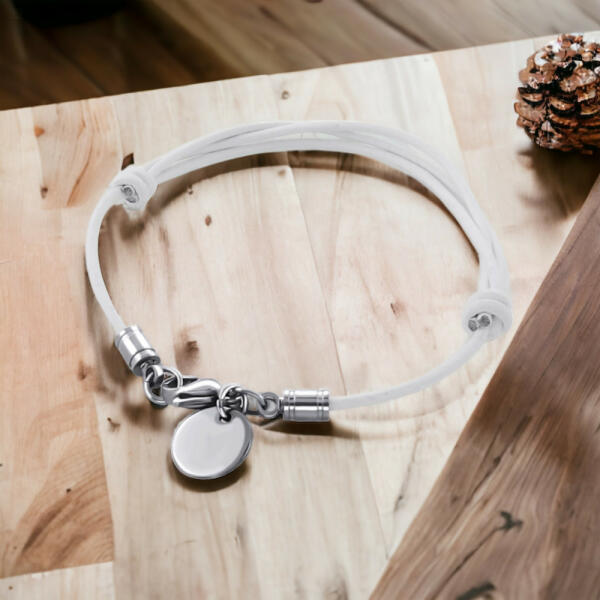 A KORONG - BŐR ZSINÓR + 316L SEBÉSZETI MINŐSÉGŰ ROZSDAMENTES ACÉL FÉRFI KARKÖTŐ egy stílusos és elegáns kiegészítő minden modernebb és divatállat férfi számára. A karkötő kiemelkedő minőségű anyagokból készült, mint például a bőr és a rozsdamentes acél, amelyek biztosítják az időtállóságát és strapabíróságát. A karkötő központi eleme a kerek alakú