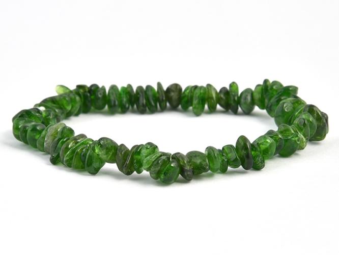 A karkötő a kevesek által ismert króm-diopszidból készült. A szemcsék mérete 0,5-1 cm közötti, az éleket a könnyebb viselhetőség érdekében lecsiszolták. Rugalmas gyöngyfűzőgumira fűzve. Különleges zöld színét a diposzid ásványban található krómnak köszönheti. A hossza : 18,5-19 cm. Az ásványok nem helyettesítik az orvosi diagnózist és kezelést. A króm-diops