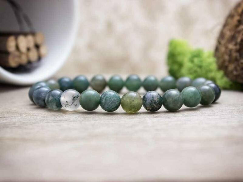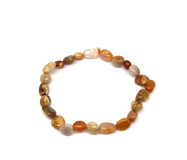 Az ásvány golyók gumira vannak felfűzve. Amit az achátról érdemes tudnod: Az achát minden színben fellelhető, többnyire szürke, kékesszürke, zöldesszürke, szürkésfehér, barna csíkozással, áttetsző. Lelki gyógyhatás: Az achát lelki gyógyhatásai közül a legkiemelkedőbb a segítségnyújtása félelmeink leküzdéséhez. Ez a mutatós kő reményt és bátorságot ad, s