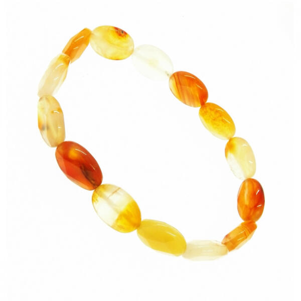 Fazettált csiszolású karneol ásvány gumis karkötő. Karneol vélt hatása