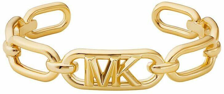 Modern stílusú, méreténél fogva igen mutatós, masszív kialakítású, ródiummal díszített szögletes profilú "barakka jellegű" arany karkötő.