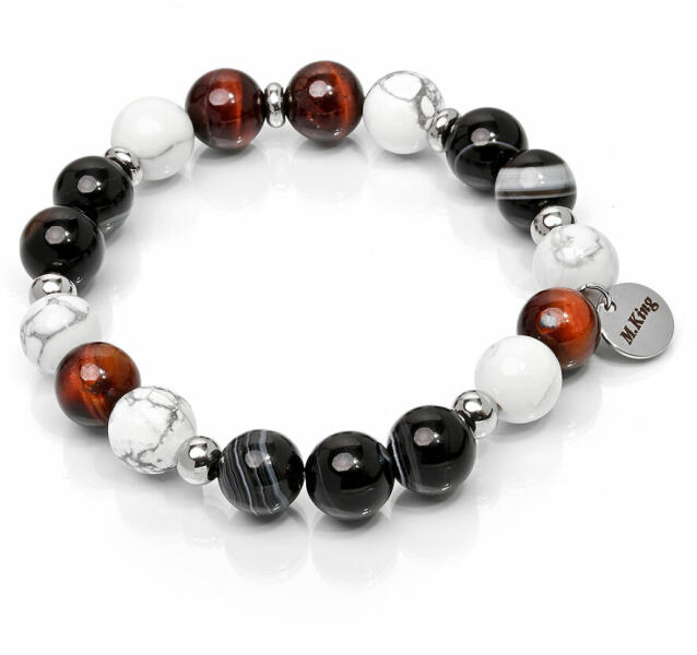 Játékos, mégis vagány howlit, achát és tigrisszem ásvány karkötő férfiaknak és nőknek is. A gyöngyök sejtelmes színei és mintázata különleges hangulatot ad ennek a remek kivitelű karkötőnek. Figyelem! A képen exkluzív kivitelű, rugalmas karkötő látható kapocs nélkül, de kérheted extra erős acélsodronyra is delfinkapoccsal és 5 cm hosszabbítólánccal. Ha a kapc