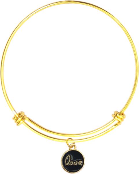 Átmérője 6 cm. Valamelyest rugalmasan felvehető, nem nyitható, tehát a kézfej is átbújik a karperecen. Kb. 17-18 cm-es körméretű csuklóig ajánlott. LOVE fekete medál arany színű karperecen. Paraméterek:Medál / mérete kb. 1,4 cm. Medál anyaga fém ötvözet. Karperec anyaga rozsdamentes acél.