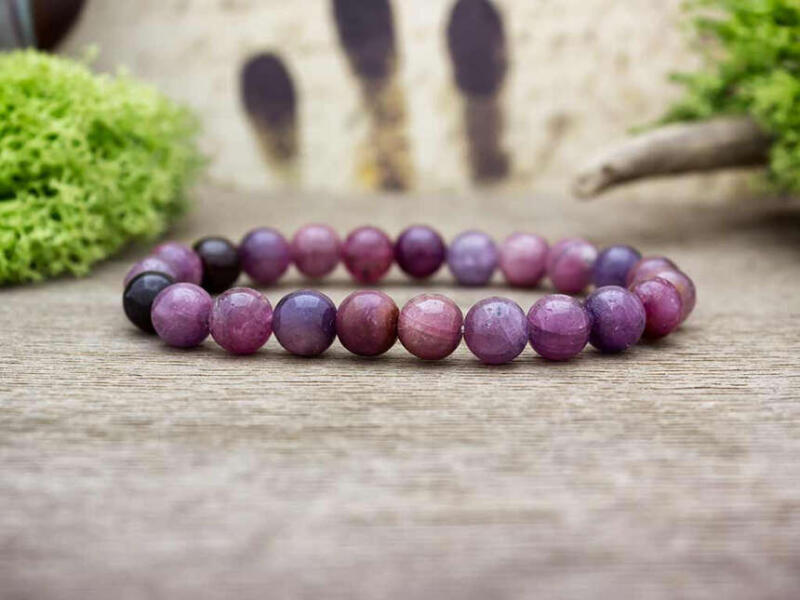 Az ásvány golyók gumira vannak felfűzve. Amit a rubinról érdemes tudnod: A rubin a gyémánt után a második legkeményebb ásvány. Színe a beépülő nyomelemek mennyiségétől és minőségétől függően az egészen világos rózsaszíntől a legkedveltebb vörösön át az egészen sötét bordóig terjedhet. A csiszolásra alkalmas tiszta, átlátszó vörös színű rubinok a legd