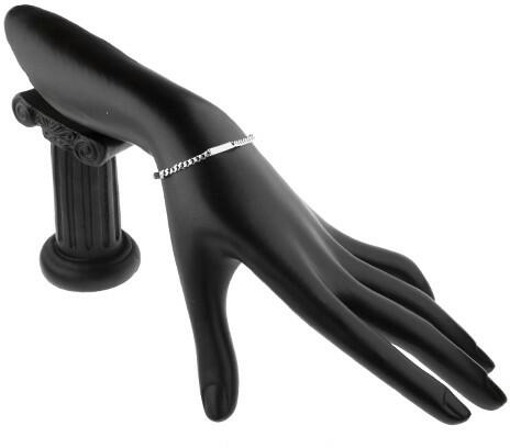 925-ös ezüstből készült karkötő, kerek lapos láncszemekből és egyszerű fényes táblákból. Delfinkapocs zárás. A karkötő hossza: 175 mm (+/- 5%)A táblák méretei: 16 x 3 mmA karkötő súlya: 3,9 gFémjelzéssel ellátott.