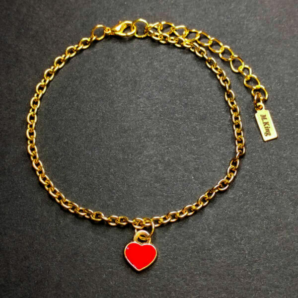Arany színű karkötő piros tűzzománc szív charmmal. Paraméterek:. Charm mérete kb. 1,1 cm. Charm anyaga fémötvözet. Karkötő mérete 17+5 cm. (Ha ettől eltérő méretet szeretnél, rendeléskor a MEGJEGYZÉSBE írd be. ) Karkötő anyaga rozsdamentes acél.