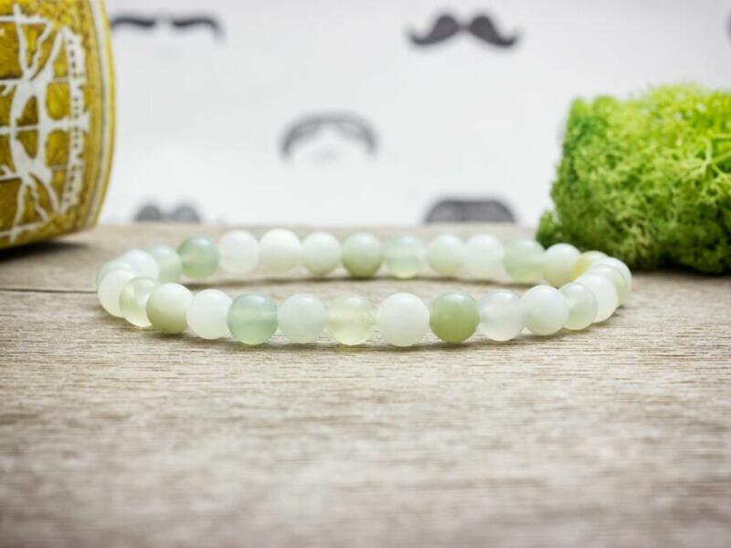 A jáde golyók gumira vannak felfűzve. Amit a jádéről érdemes tudnod: A Jáde egy gyűjtőcsoportja a kövek egy fajtájának. A zöld kínai jáde az egyik legnépszerűbb és leggyakoribb a csoporton belül, amelyik hazájában Kínában nemzeti kőnek számít. Lelki gyógyhatás: A zöld szín általános nyugtató hatással bír. Igaz ez a jádéra is, mivel csökkenti az agressziót, s
