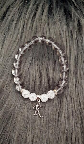 Álomszép, egyedi tervezésű 8 mm-es roppantott és sima áttetsző hegyikristály ásványokból készült karkötő. A betű szabadon megválasztható hozzá a termékvásárlás során. Más színben és más ásványokból is eltudjuk készíteniebben az esetben, vedd fel velünk a kapcsolatot, vagy töltsd ki, az "Alkosd meg ékszeredet" oldalt