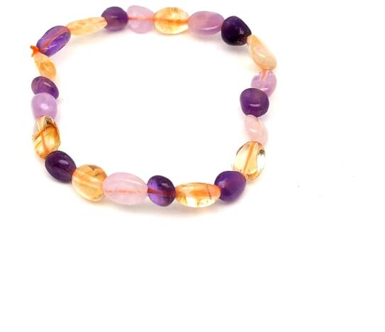 Rózsakvarc ametiszt citrin karkötő (pebble Karkötő ásvány) Egyedi ásvány ékszer