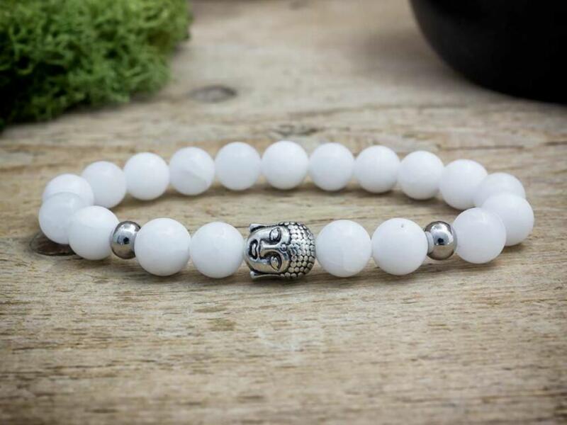 8 mm-es tejkvarc ásvány gyöngyökből, gumira fűzött ásvány karkötő. Az ékszert egy Buddha medál díszíti. Amit a tejkvarcról érdemes tudnod: Segít felidézni gyermeki énünket, utat nyit az ártatlanság, a lelkesedés felé. A gyermeki ártatlanság, és előítélet mentes kíváncsiságával fedezhetjük fel újra a világot. Erősíti az életbe vetett hitet, feloldja a szomor