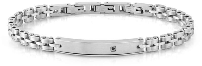 Nomination Strong Diamond férfi karkötő típusa 028324-001. Ezüst és fekete acél férfi karkötő öt fekete gyémánttal. Ez az ékszer ötvözi az erőt és az eleganciát, egyedi kialakításával pedig minden alkalomra tökéletessé teszi. A karkötő középpontjában a fekete gyémánt áll, amely az időtlen állhatatosság szimbóluma.