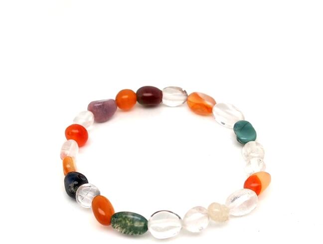Karneol hegyikristály rutilkvarc vegyes achát moha karkötő (pebble "A " minőség Karkötő ásvány) Egyedi ásvány ékszer