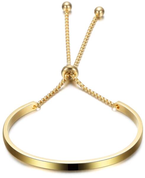 3.5 mm széles, a merev rész belső átmérője 6 cm karkötő könnyedén méretre állítható a csúszózárnak köszönhetően nemesacél karlánc, arany fazonban anti allergén, nem kopik, magasfényű, tartós ékszer az idő múlásával nem veszít fényéből