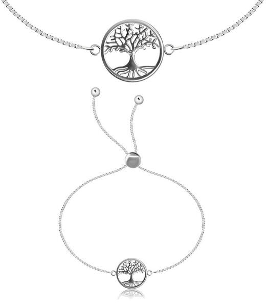 Az állítható 925 ezüst karkötő négyzetes láncszemekből álló lánc , amelynek a végén gyögy van. A medálon fényes életfa található , gyökérrel a gyűrű kontúrjában. Láncszélesség: 1 mmKarkötő hossza: 270 mm (+/- 5%)Medál mérete: 13 x 18 mmKarkötő súlya: 3,6 gFémjel -van.