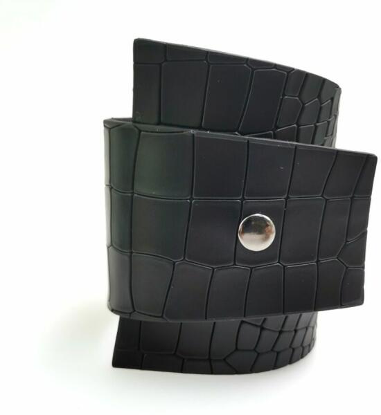 Divat dizájnbőr karkötő, állítható, fekete. Trendi, kicsit retró, mégis mai, vagány, különleges. Anyaga műbőr és fémötvözet. Egy jól megválasztott ékszer öltöztet, feldobja a napodat, valahányszor ránézel, jobb kedvre derülsz. A színekkel és anyagokkal manapság könnyű variálni a különböző stílusokat, nem kell ragaszkodni a hagyományos szettekhez, nem feltétl