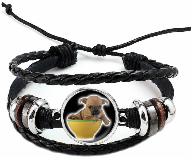 Ez az egyedi dizájn csak nálunk kapható. Tartós, egyedi, kézzel készült ékszer. Ha állatmániás vagy, és különösen a kutyákat szereted, valamint szívesen mutatod ki egy ékszer formájában is rajongásodat az állatvilág iránt, akkor ezt a chivava kölykös üveglencsés karkötőt neked találták ki. Elegáns, fekete szín, mindenhez passzol. A legjobb gesztus és ajándéköt