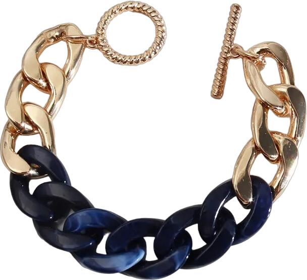 Cadena Karkötő Cadena karkötő verhetetlen áron. Az ékszer nem tartalmaz nikkelt, ezért érzékeny bőrű emberek is viselhetik. Tulajdonságok: A karkötő hossza: 15cm Anyaga: Műanyag, Fém és cink ötvözete Szín: Arany/Kék