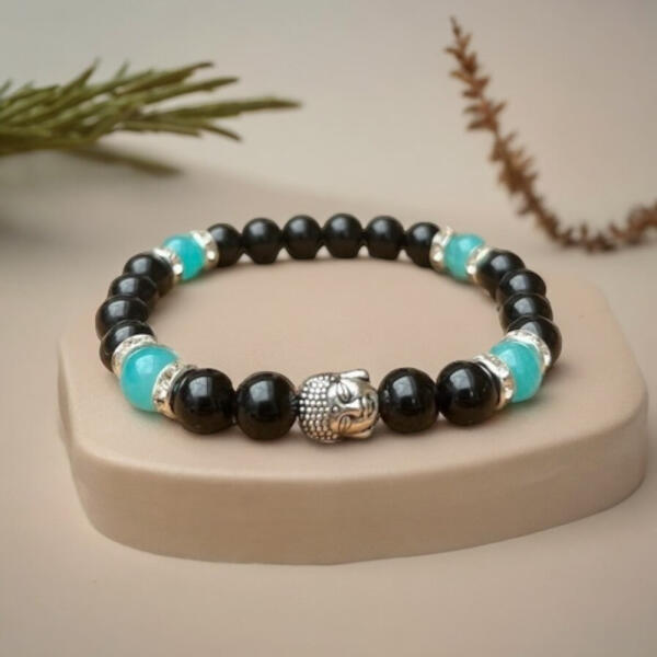 A gyöngyök átmérője: körülbelül 8mm Obszidiánból és Amazonitból készült, ezüst színű közökkel és Buddha fejjel diszített karkötő. Nem tudod, hogyan válassz csuklóméretet?Kattints ide és segítünk! Kizárólag minőségi ásványokból készítve! Ingyenes dísztasakban érkezik hozzád, így akár ajándékozásra is készen áll. 1-3 Munkanapon belüli szállítás az