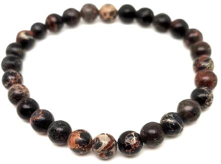 Jáspis ásvány karkötő. Az ásvány golyók gumira vannak felfűzve. Amit a jáspisról érdemes tudnod: Gyakori előfordulása és a földszínek széles skálája miatt a jáspist ősidők óta használják dísztárgyak és pecsétek készítésére. Mágikus ereje miatt is nagyra értékelték. Úgy hitték, hogy túlvilági szellemi cselszövések ellen véd és a szerelmi bánatot mérs