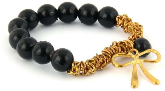 Nagyon elegáns, divatos fekete gyöngyös karlánc masnis medállal.