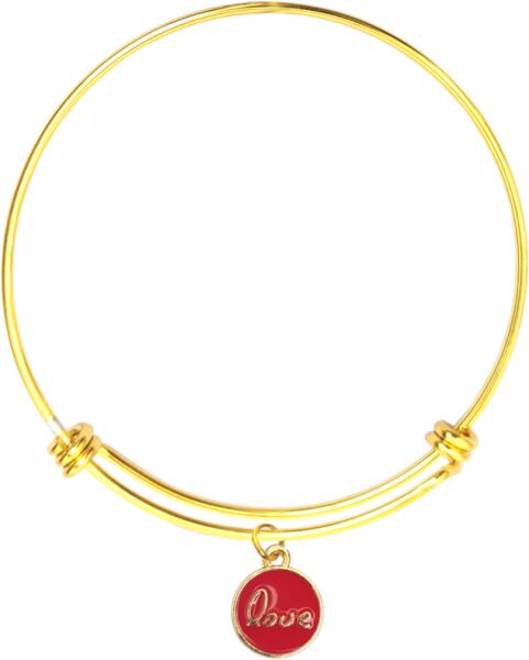 Átmérője 6 cm. Valamelyest rugalmasan felvehető, nem nyitható, tehát a kézfej is átbújik a karperecen. Kb. 17-18 cm-es körméretű csuklóig ajánlott. LOVE piros medál arany színű karperecen. Paraméterek:Medál / mérete kb. 1,4 cm. Medál anyaga fém ötvözet. Karperec anyaga rozsdamentes acél.