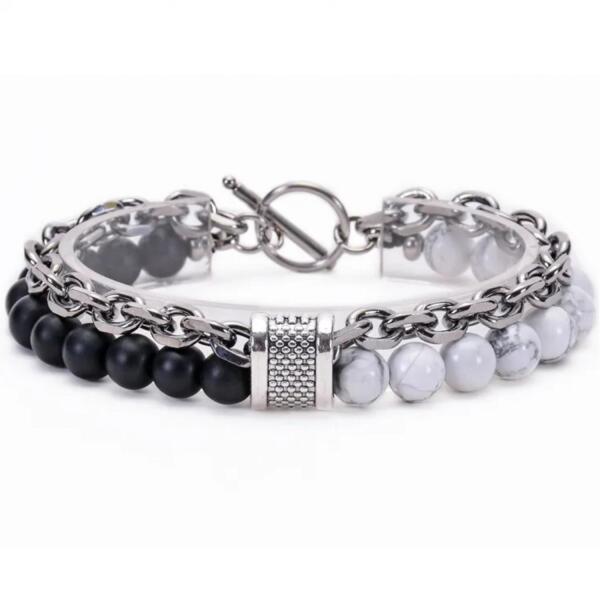 Marcus karkötő A Marcus karkötő természetes kövek és fém elemek stílusos kombinációja, amely modern és kifinomult dizájnt teremtenek. A középső domináló fém rész indusztriális jelleget ad a karkötőnek, így megkülönbözteti azt a hagyományos ékszerektől. Ez a karkötő azok számára ideális, akik olyan kiegészítőt keresnek, amely alkalmas mindennapi viseletre, de k
