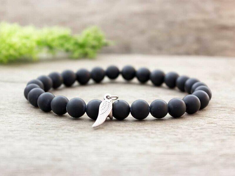 Ónix ásványgyöngyökből készült karkötő. Amit az ónixról érdemes tudnod: Az ónix általában fekete, néha előfordulhat fehér, szürkés csíkozódással is. Lelki gyógyhatása: Az ónix egy védelmező kő, amely a negatív energiák ellen véd. Csökkenti a befolyásolhatóságunkat, növelve így az önbizalmunkat, egészséges egónkat. Egyensúlyba hozza a külsőnket és bels