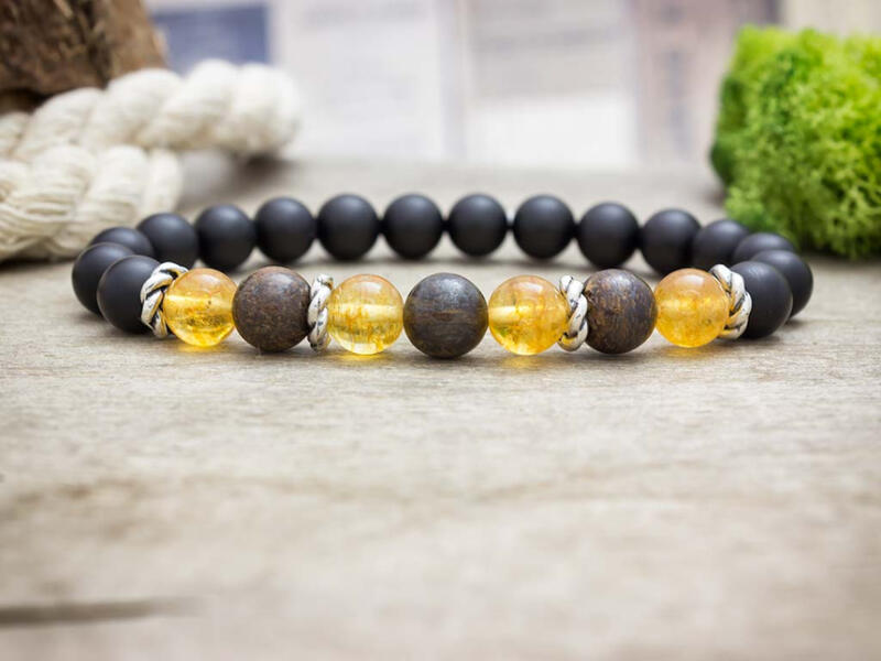 A 8 mm-es bronzit, citrin és ónix ásvány gyöngyök gumira vannak felfűzve. Egyedi tervezés alapján készült kézműves ékszer. Figyelem! Az ásványokat, kristályokat az őskor óta használják a test, a lélek és az érzelmek harmonizálására. Az ókori kultúrákban kifejezetten elterjedtek voltak. Az évezredek alatt számtalan tudás és tapasztalat gyűlt össze róluk. Ás