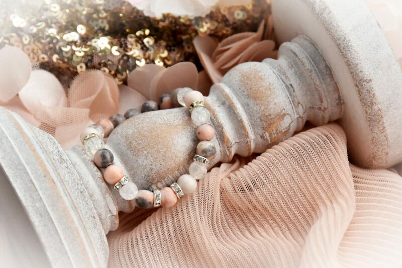 A rózsakvarc és füstkvarc ásvány golyók gumira vannak felfűzve. Amit a rózsakvarcról érdemes tudnod: A festetlen rózsakvarc az egész világos, szinte áttetszőtől, a ködös középrózsaszínig terjed. Az egyik legnépszerűbb kövek egyike, amely szépséges küllemének és erős gyógyhatásának köszönhető. Története a görög és római mitológiába nyúlik vissza, amely