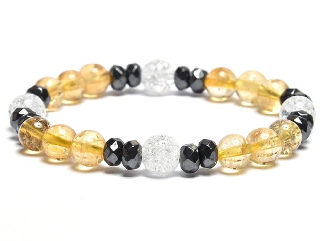 A karkötő 8 mm-es citrin és repesztett hegyikristály ásvány golyókat, valamint 6x3,5 mm-es hematit tárcsát tartalmaz, duplasorosan gumira fűzve. A karkötő méretének meghatározása : a csuklód pontos méretéhez adj hozzá 1,5 cm-t. KÉRLEK VÁLASSZ MÉRETET ! Az ásványok nem helyettesítik az orvosi diagnózist és kezelést. A citrin hatása : a citrin a gazdagságot hozó krist