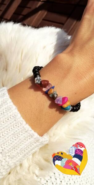 Az ásvány golyók gumira vannak felfűzve. Csakra karkötő ásványai: gránát, jáspis, tigrisszem, aventurin, kalcedon, ametiszt, hegyikristály. Nikkelmentes ékszer. Egyedi tervezés alapján készült kézműves ékszer. Amennyiben egyéni kérésed van, vagy nem találod, amit szeretnél, keress engem bátran. Figyelem! Az ásványokat, kristályokat az őskor óta használják a test, a