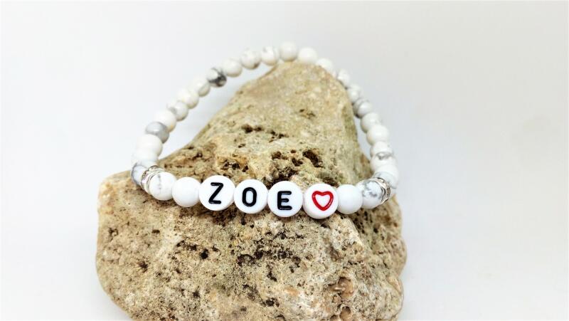 Csodálatos lehetőség, hogy gyermeked nevét magadon viseld! Ez az egyedi karkötő 6 mm márványos howlit ásványokból készült, és egyedileg rendelhetők hozzá a név. A betűket kérlek a vásárlás végén a megjegyzés rovatban add meg nekünk.