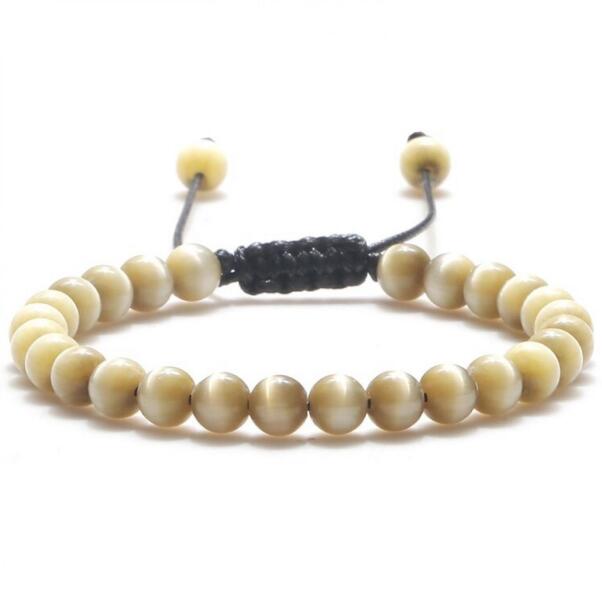 Cat Eye Karkötő Különleges Cat Eye karkötő verhetetlen áron. Az ékszer nem tartalmaz sem nikkelt, sem ólmot, sem kadmiumot, ezért érzékeny bőrű emberek is viselhetik. Tulajdonságok: A karkötő mérete: max. 24cm (makramécsomózású, húzással állítható) A golyók mérete: 0,5cm Anyaga: Pamut, gyöngyök Szín: Barna