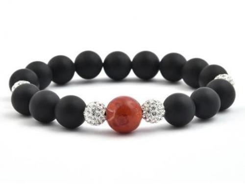 A matt ónix 10 mm-es, valamint a szivacs korall szintén 10 mm-es gömbjeiből készített karkötő. Díszítő elem 4 db 8 mm-es strasszos golyó. A szemeket duplasorosan gyöngyfűző gumira fűztük. A karkötő méretének meghatározása : a csuklód pontos méretéhez adj hozzá kb. 2 cm-t. KÉRLEK VÁLASSZ MÉRETET ! Az ásványok nem helyettesítik az orvosi diagnózist és kezelést. Az