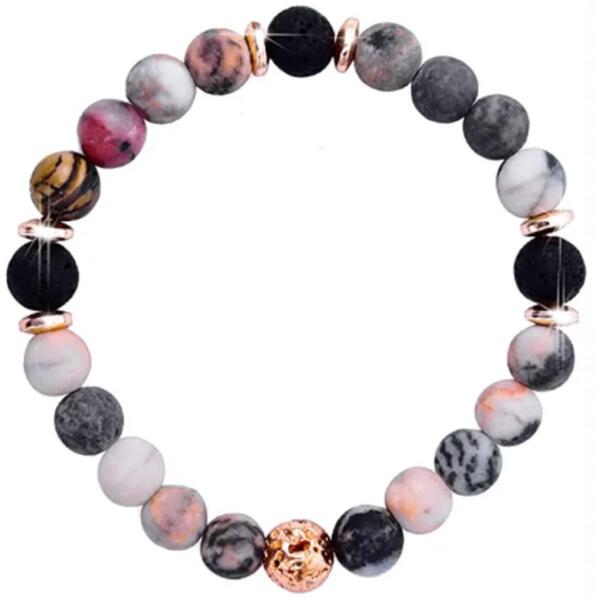 Mirinela karkötő A Mirinela karkötő elegáns, különböző színű köveket kombinál, amelyek egyedi és természetes megjelenést kölcsönöznek az ékszernek. Minden gyöngy a karkötőben finom árnyalatokban van jelen fekete, fehér, rózsaszín színekben és arany akcentusokkal van kiegészítve, amelyek egy csipetnyi luxust és eleganciát adnak hozzá. Egyszerűsége és a színek h